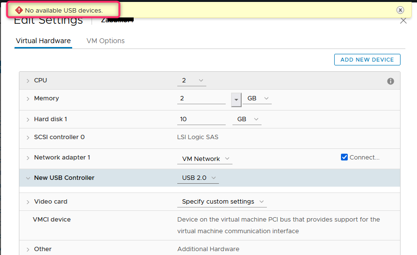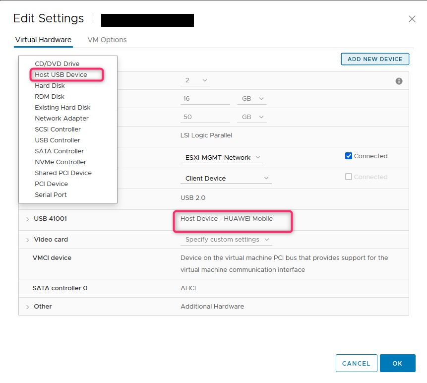 Today I was able to help one of my colleagues to troubleshoot his ESXi level issue. What he wanted to do is connect his dongle to one of his VMs to get internet access through that dongle. So he has tried to connect a USB dongle to his VM where it is hosted in VMware ESXi (6.5) but it doesn’t appear on the VM as a host USB device. He has already added a USB controller (2.0 and 3.0 will be discussed later) to the and connected the USB dongle into the appropriate ESXi server as well.